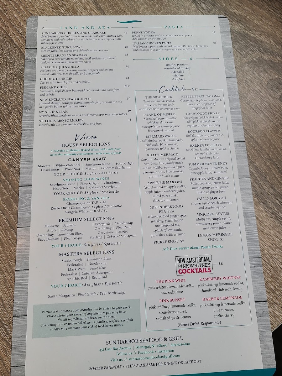 Sun Harbor Seafood and Grill Menu (2025 Update)